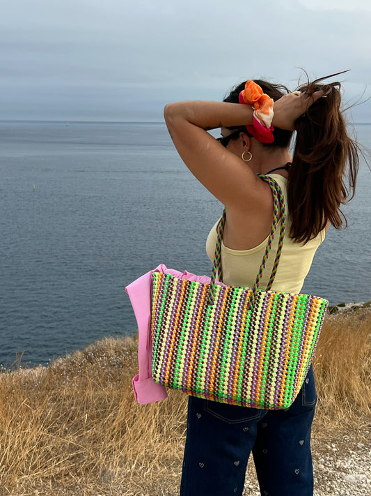 N°422L - SAC CABAS TRESSÉ MAIN - GRAND - multicolors