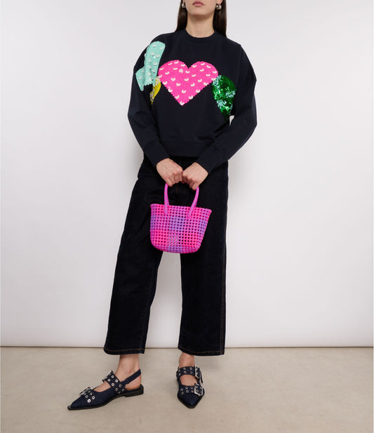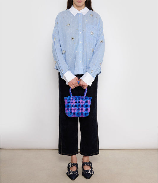 N°5XS - SAC CABAS TRESSÉ MAIN - MINI - bleu foncé & violet