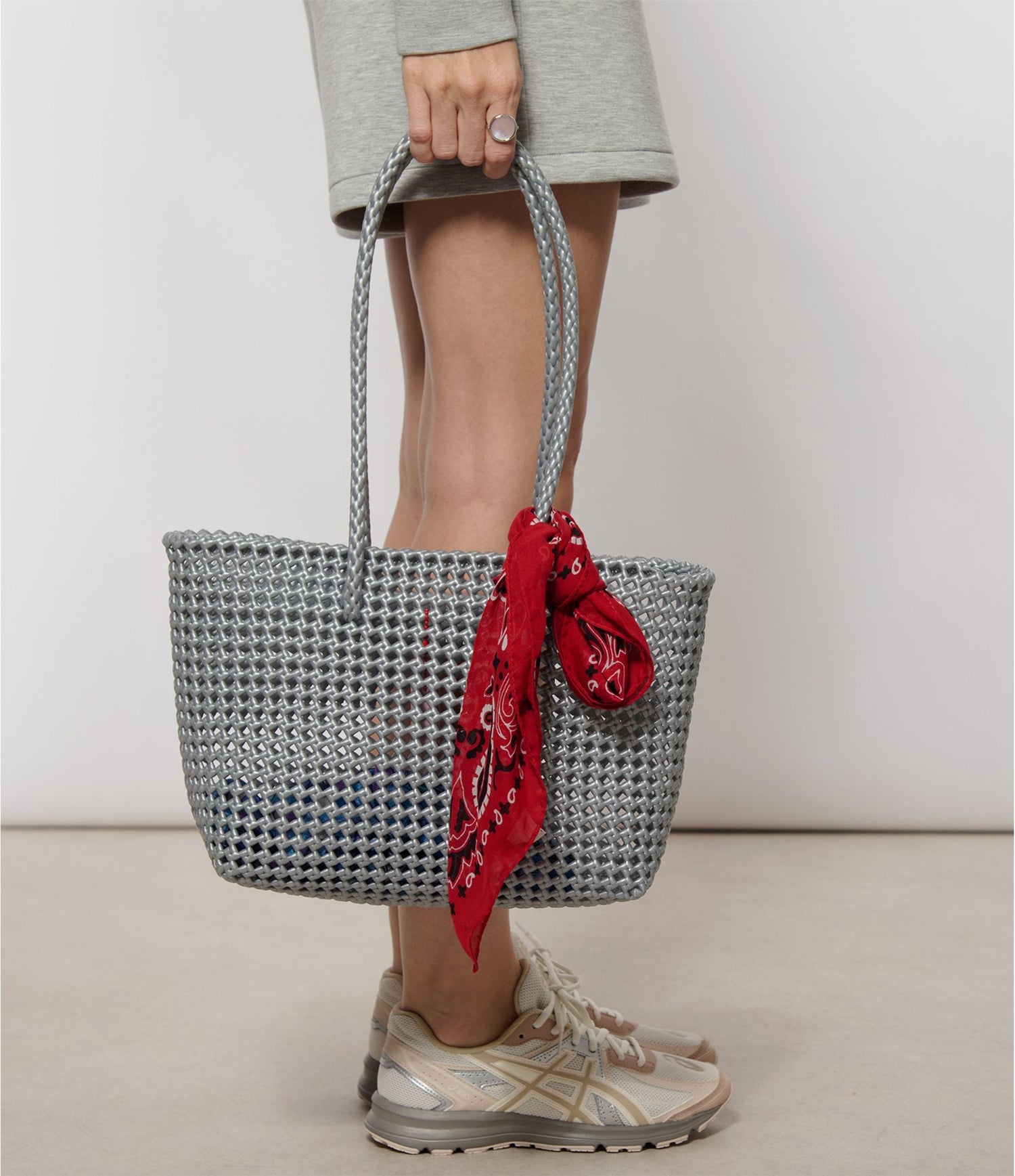 N°110L - SAC CABAS TRESSÉ MAIN - GRAND - rose clair & argenté