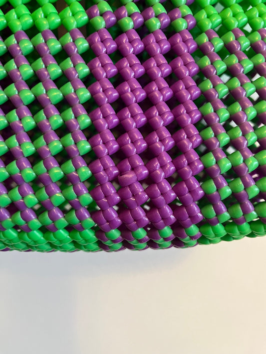 N°2S - SAC PANIER TRESSÉ MAIN - PETIT - violet & vert fluo
