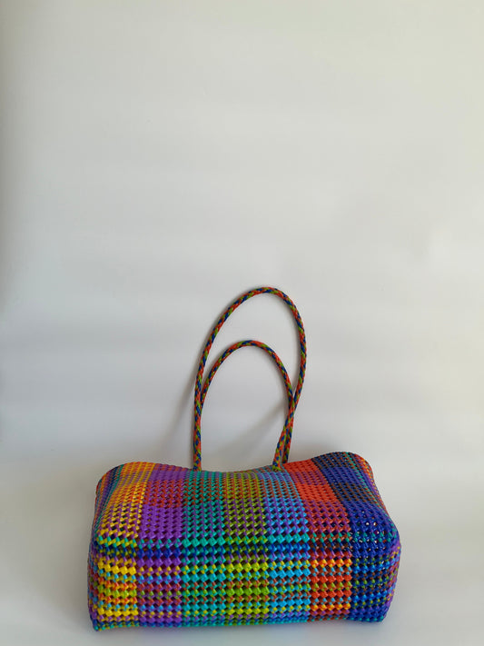 N°489S - SAC PANIER TRESSÉ MAIN - PETIT - multicolors