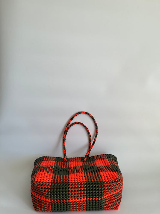 N°496L - SAC PANIER TRESSÉ MAIN - GRAND - kaki & orange fluo