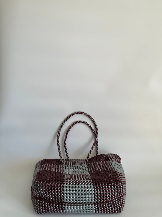 N°498L - SAC PANIER TRESSÉ MAIN - GRAND - bordeaux & argenté