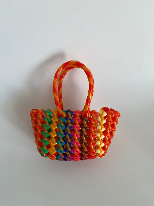 N°4SC - SAC PANIER CROCHET STRIE S - PETIT - multicolors
