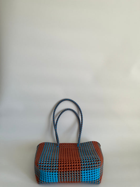 N°4S bis - SAC PANIER TRESSÉ MAIN - PETIT - bleu clair & violet