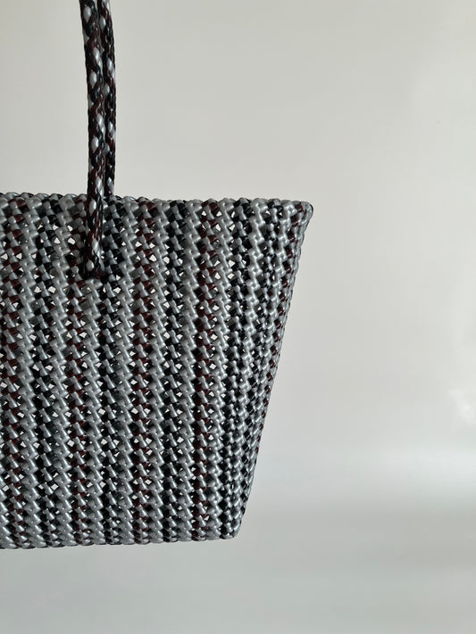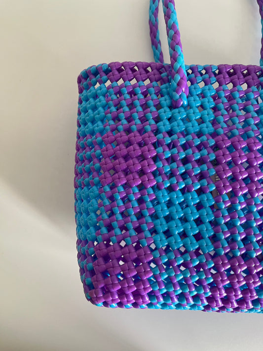 N°4XS - SAC PANIER TRESSÉ MAIN - MINI - violet & bleu clair