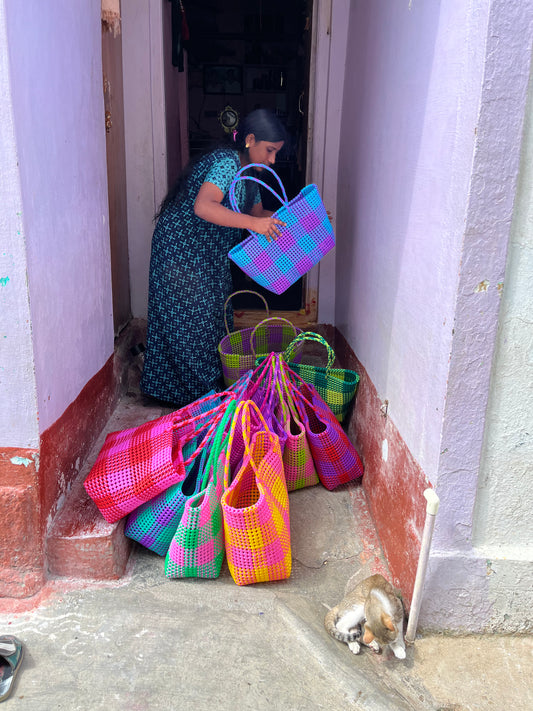 N°500M - SAC PANIER TRESSÉ MAIN - MOYEN - multicolors