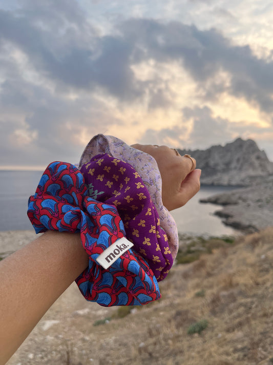 N°89L - SAC PANIER TRESSÉ MAIN - GRAND - violet & orange