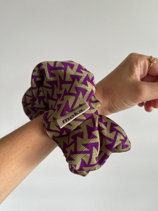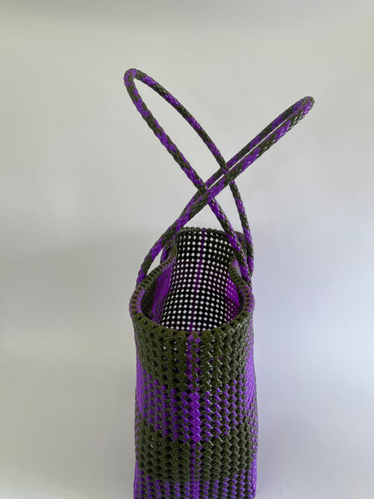 N°96S - SAC PANIER TRESSÉ MAIN - PETIT - violet & kaki