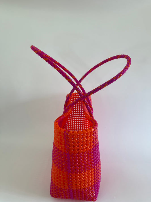 N°97S - SAC PANIER TRESSÉ MAIN - PETIT - rose foncé & orange