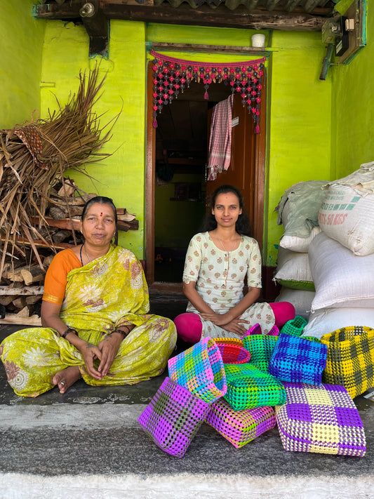 N°9S - SAC PANIER TRESSÉ MAIN - PETIT - rose foncé & violet