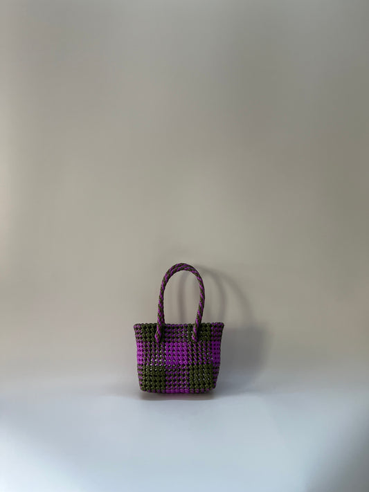 N°96XS - SAC PANIER TRESSÉ MAIN - MINI - kaki & violet