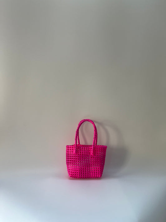 N°98XS - SAC PANIER TRESSÉ MAIN - MINI - rose foncé & rose fluo