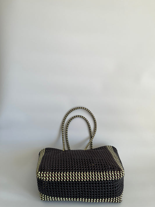 N°185S bis - SAC PANIER TRESSÉ MAIN - PETIT - argenté & noir