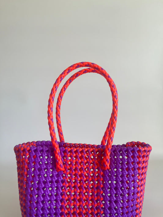 N°213S bis - SAC CABAS TRESSÉ MAIN - PETIT - violet & orange fluo