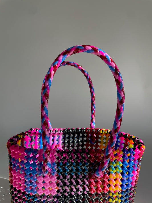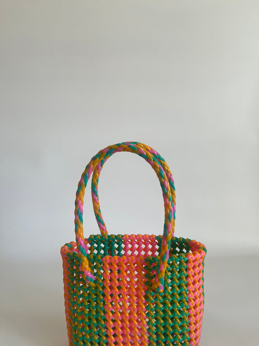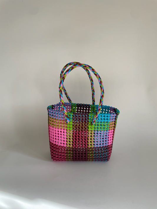 N°247XS - SAC CABAS TRESSÉ MAIN - MINI - multicolors