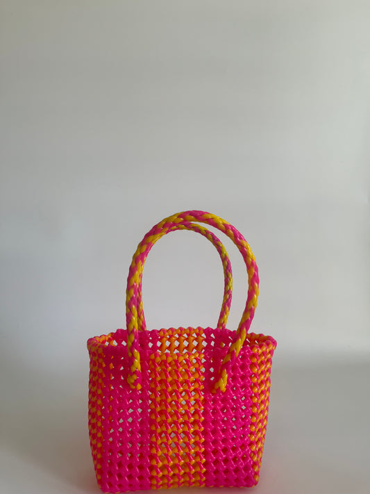 N°120XS bis - SAC CABAS TRESSÉ MAIN - MINI - jaune & rose fluo