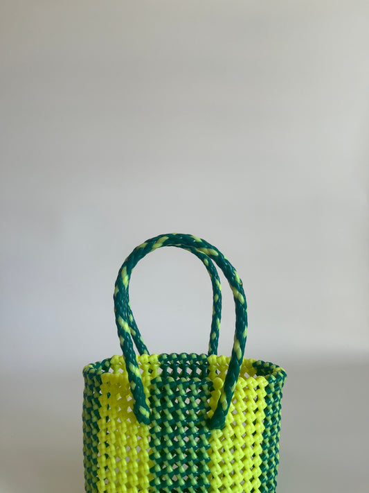 N°129XS - SAC CABAS TRESSÉ MAIN - MINI - jaune fluo & vert foncé