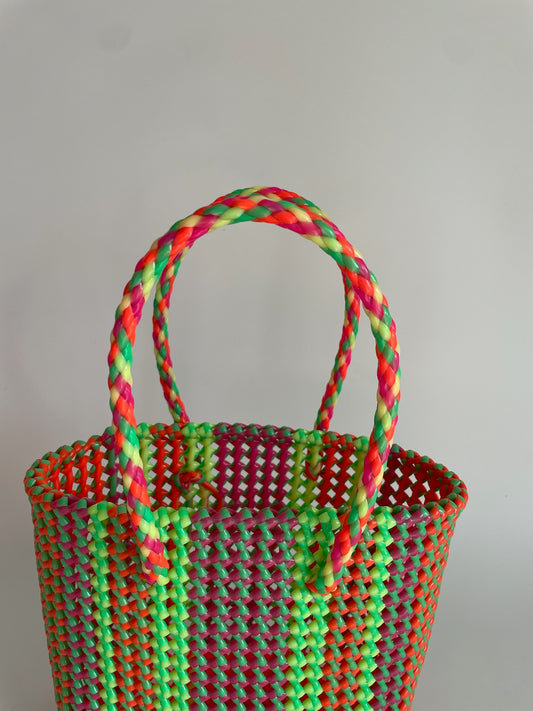 N°20XS bis - SAC CABAS TRESSÉ MAIN - MINI - rose fluo & vert fluo
