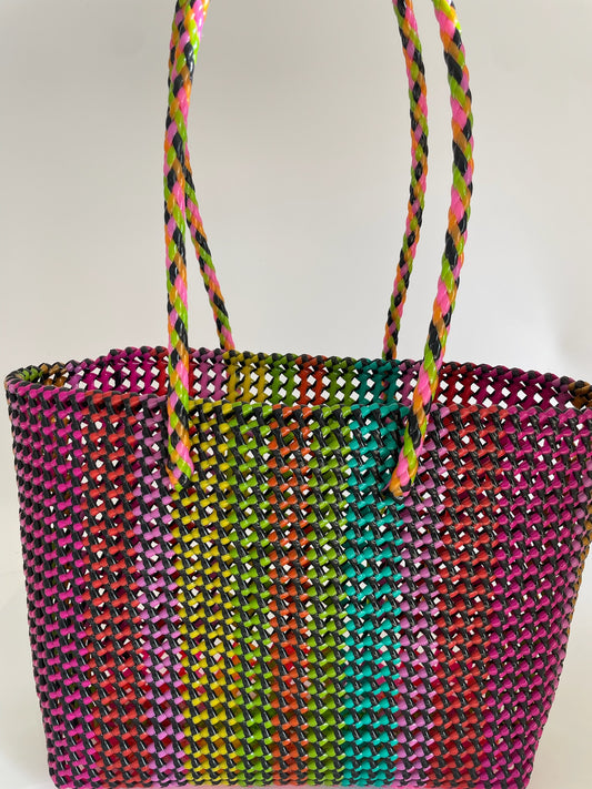 N°249L - SAC CABAS TRESSÉ MAIN - GRAND - multicolors