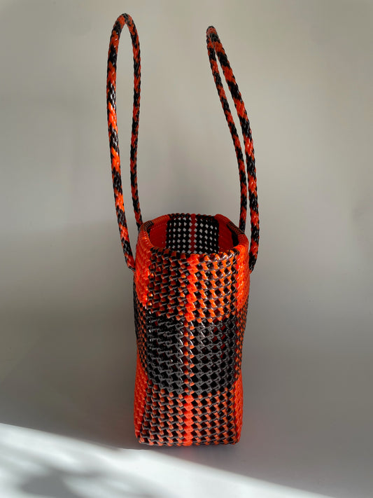 N°252M - SAC CABAS TRESSÉ MAIN - MOYEN - marron & orange