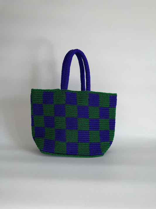 N°25SC - SAC PANIER CROCHET DAMIER L - GRAND - VIOLET & BLEU FONCE