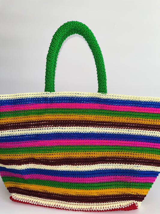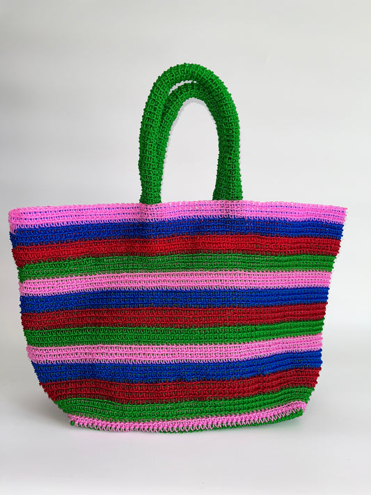N°26SC - SAC PANIER CROCHET STRI XL - MAXI - multicolors