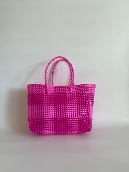 N°26L - SAC CABAS TRESSÉ MAIN - GRAND - rose foncé & rose clair