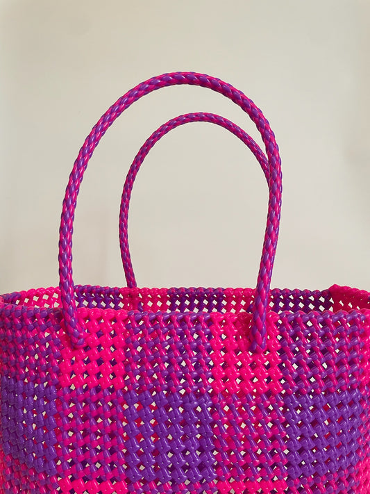 N°88L - SAC CABAS TRESSÉ MAIN - GRAND - violet & rose fluo
