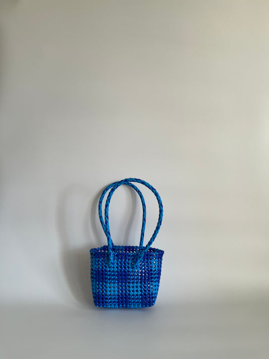 N°50XS - SAC CABAS TRESSÉ MAIN - MINI - bleu foncé & bleu clair