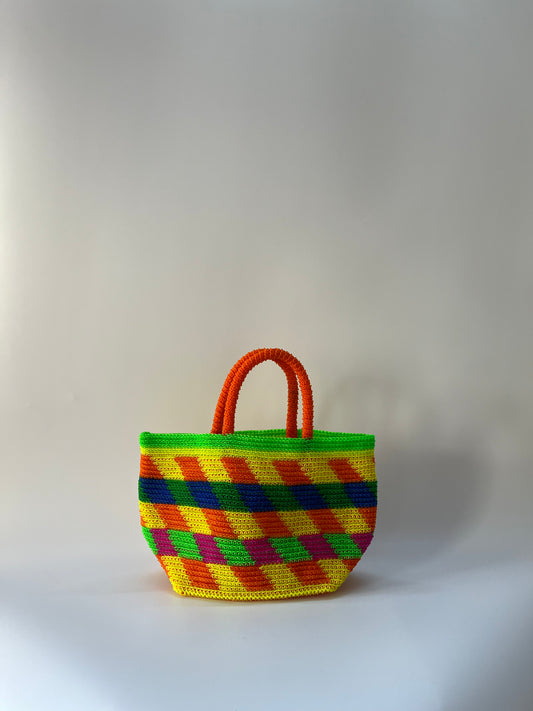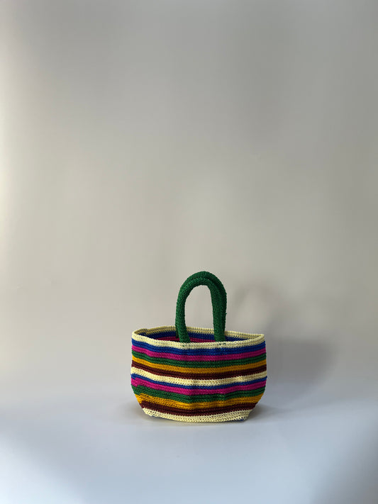 N°4SC - SAC PANIER CROCHET STRIE S - PETIT - multicolors