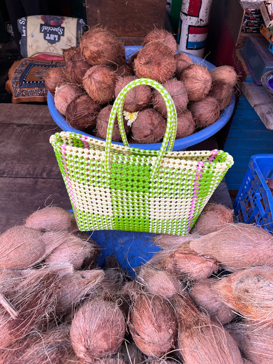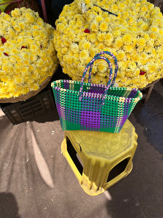 N°225M - SAC CABAS TRESSÉ MAIN - MOYEN - multicolors