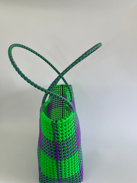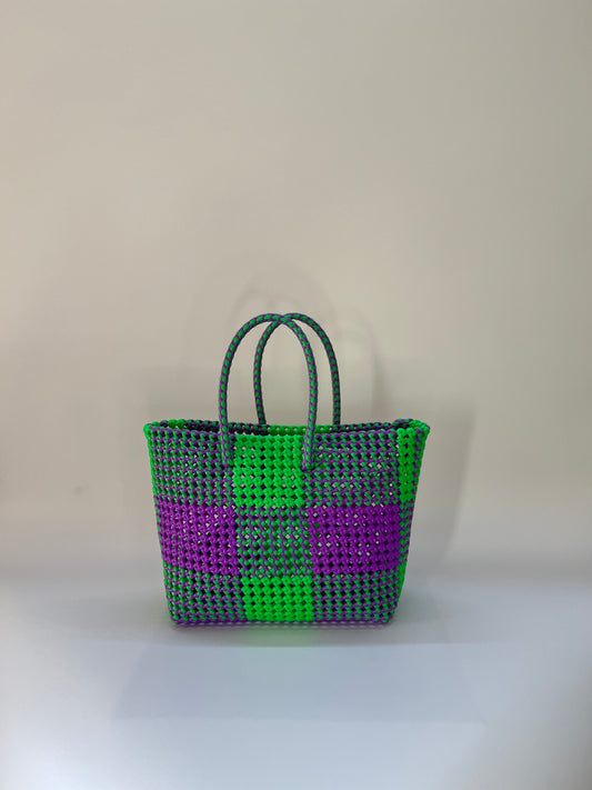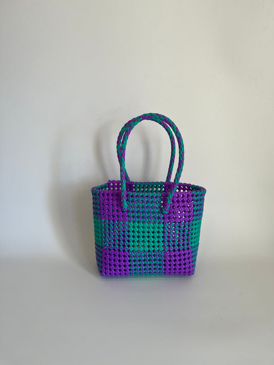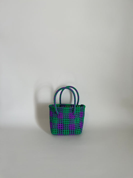 N°1XS - SAC CABAS TRESSÉ MAIN - MINI - vert & violet