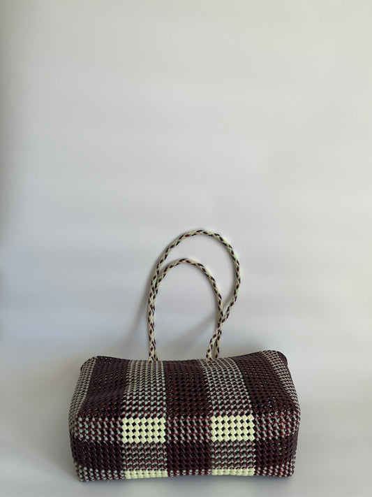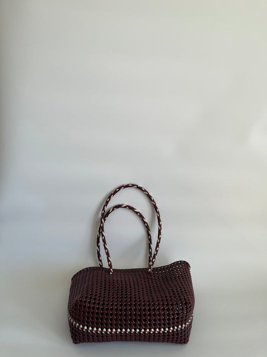N°257M bis - SAC PANIER TRESSÉ MAIN - MOYEN - bordeaux & écru