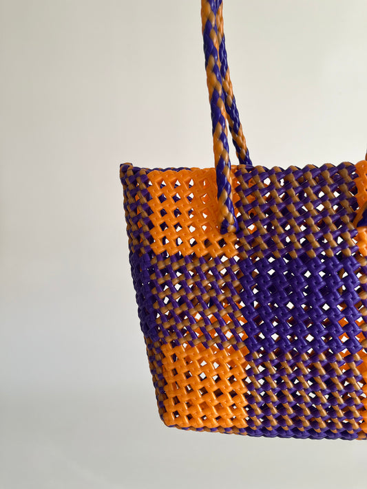 N°512S - SAC PANIER TRESSÉ MAIN - PETIT - orange métallique & rose fluo glacé