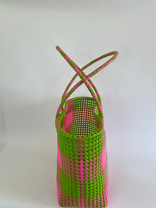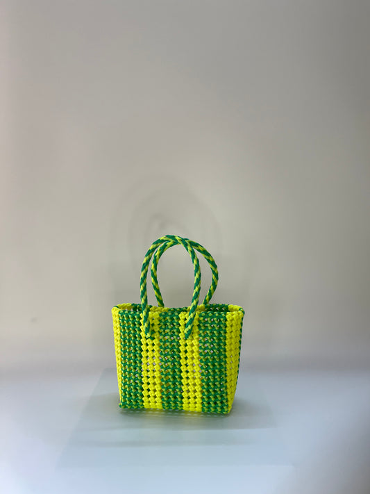 N°128XS - SAC PANIER TRESSÉ MAIN - MINI - vert & jaune fluo