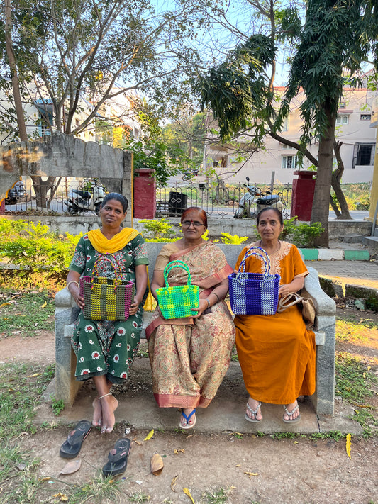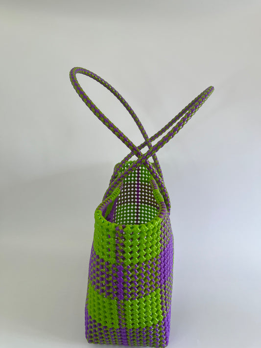 N°6XS - SAC PANIER TRESSÉ MAIN - MINI - vert clair & violet