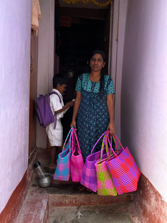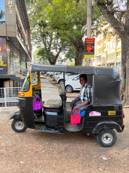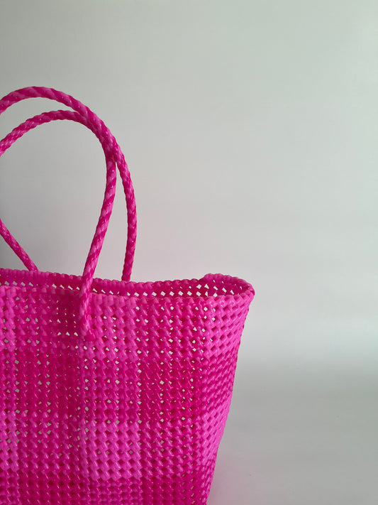 N°88S bis - SAC PANIER TRESSÉ MAIN - PETIT - rose fluo & violet