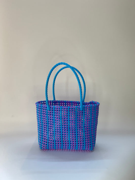 N°4L - SAC PANIER TRESSÉ MAIN - GRAND - bleu clair & violet