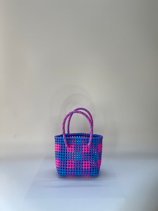 N°13XS - SAC PANIER TRESSÉ MAIN - MINI - rose clair & bleu clair