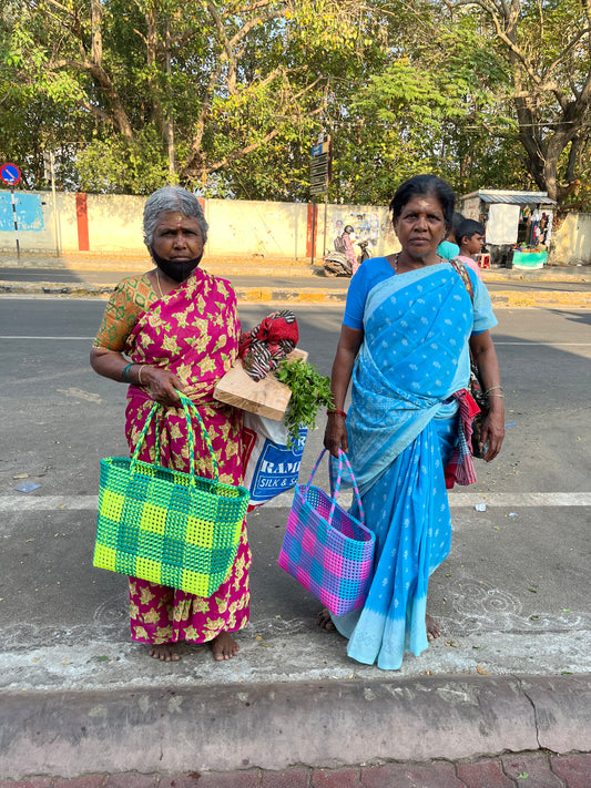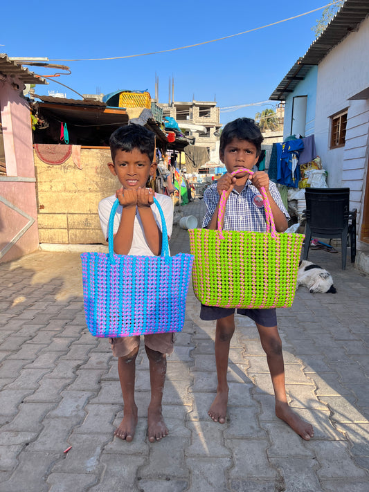 N°6L - SAC PANIER TRESSÉ MAIN - GRAND - vert clair & violet