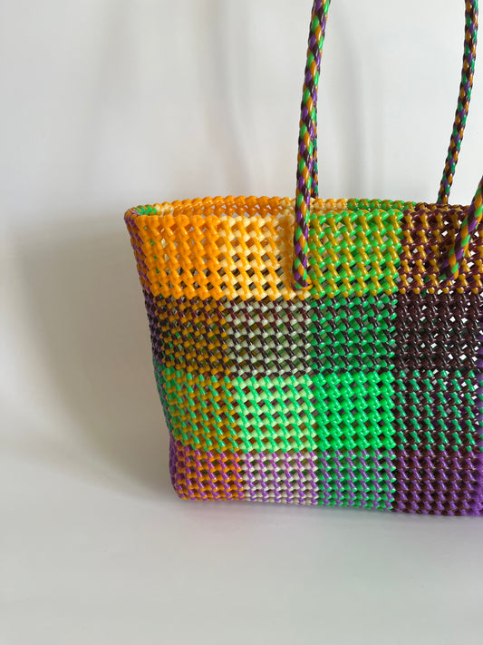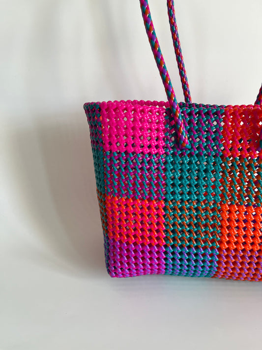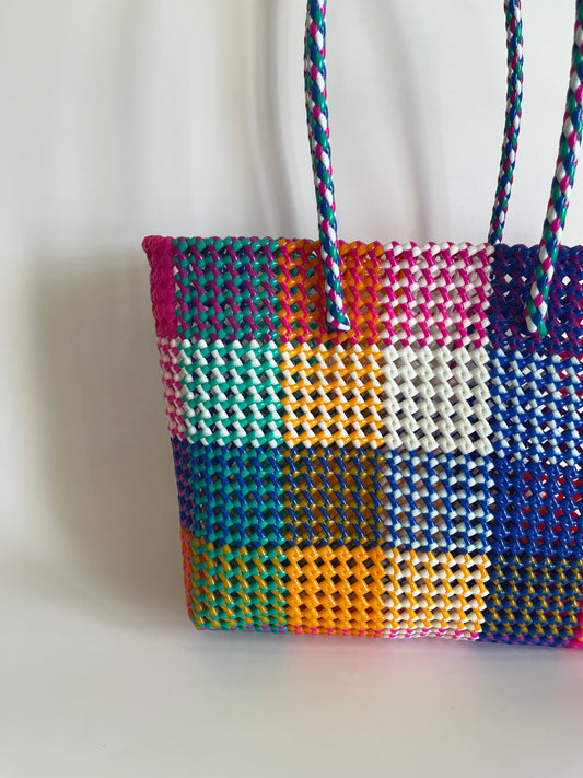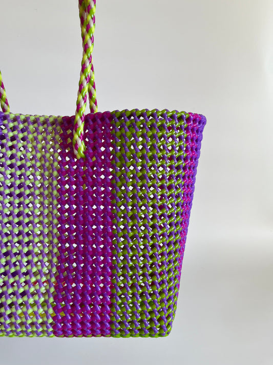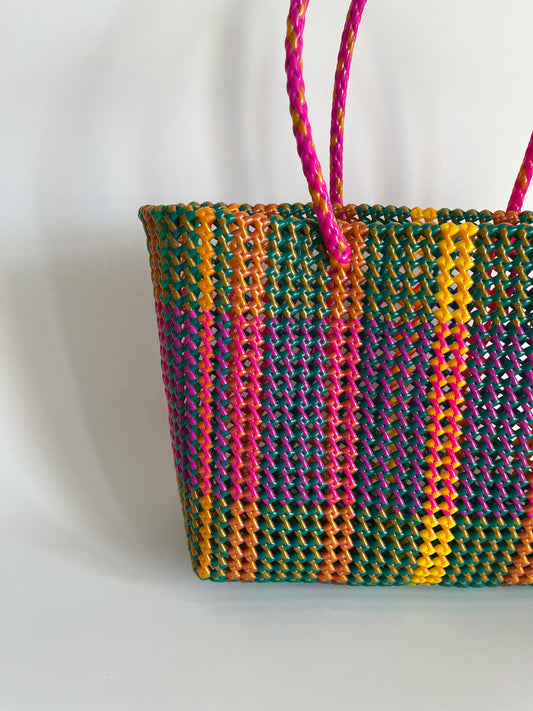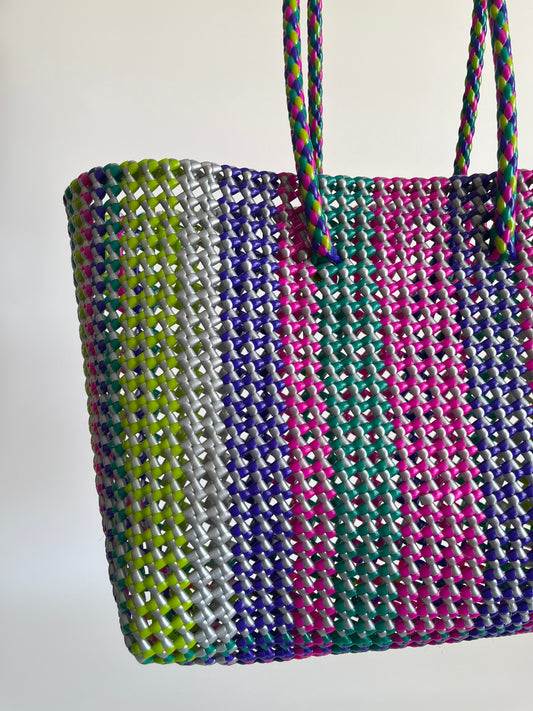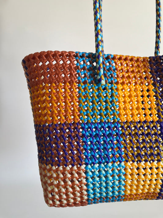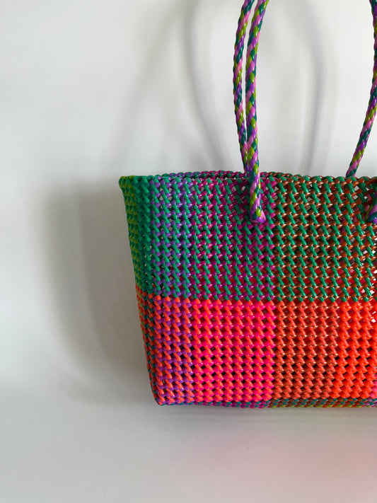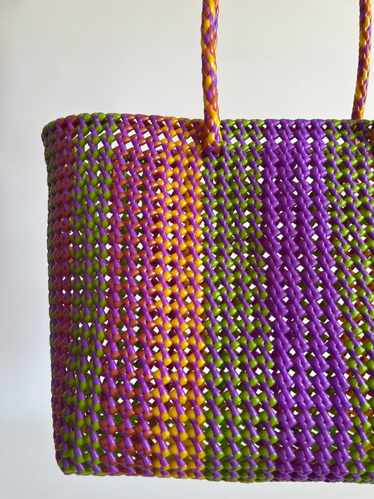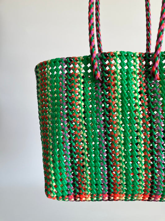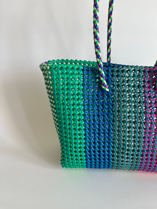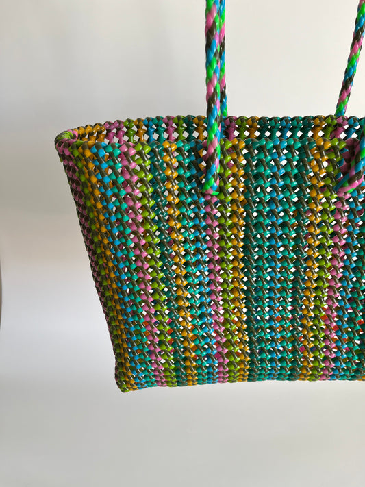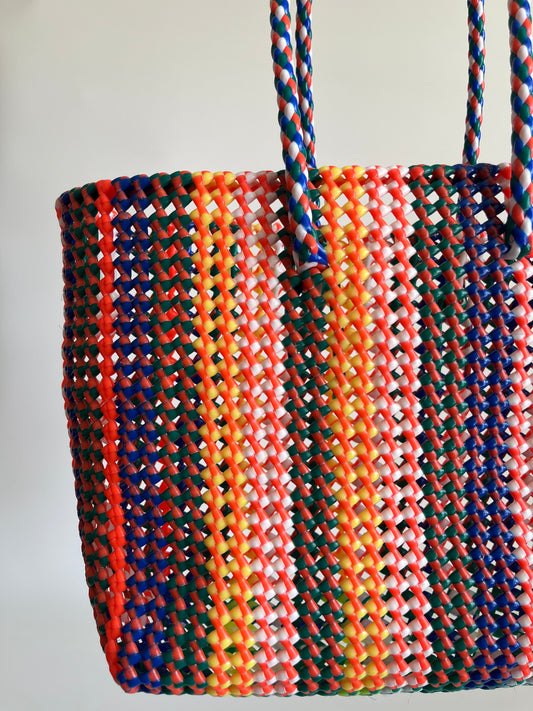 N°487L - SAC PANIER TRESSÉ MAIN - GRAND - multicolors