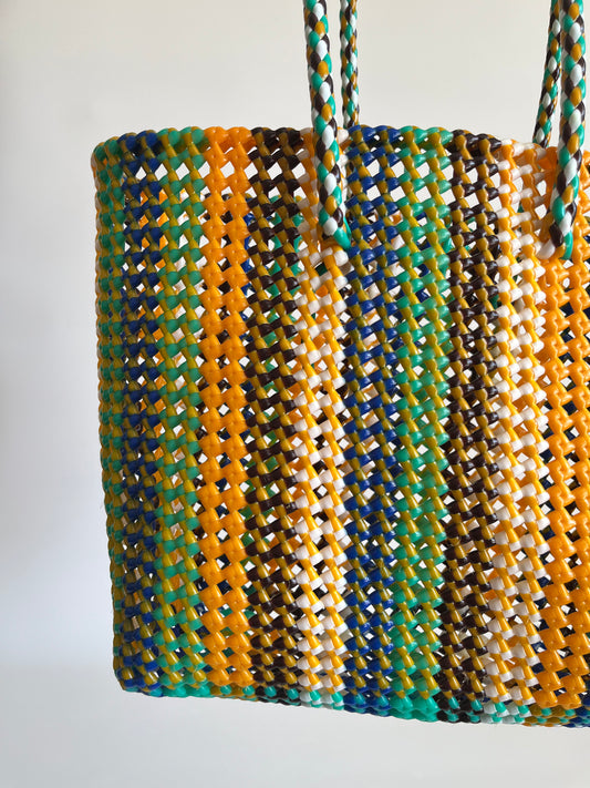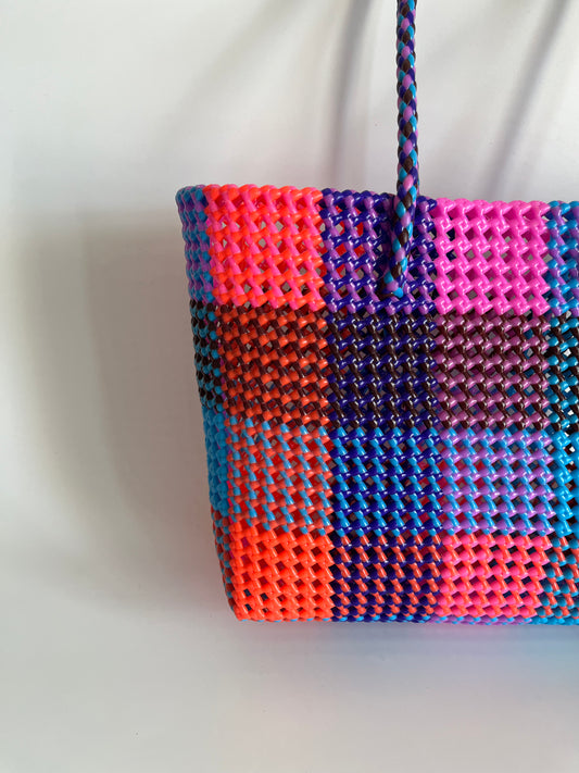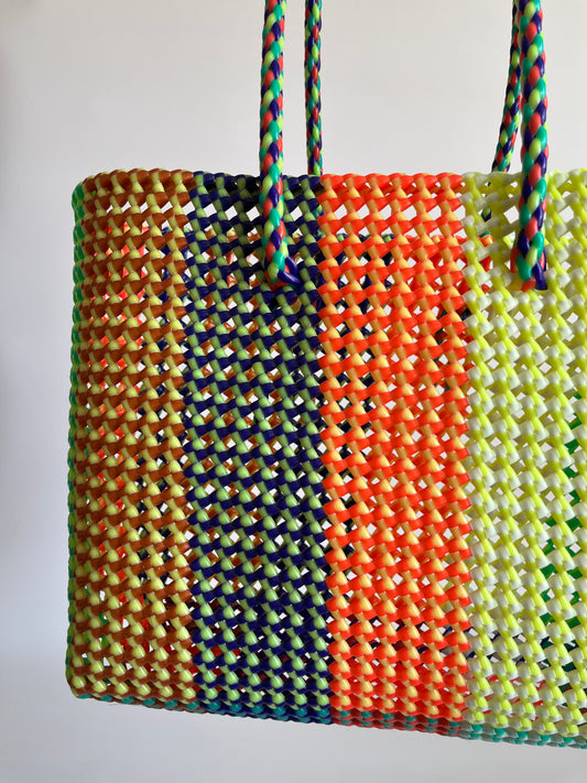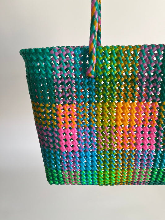 N°483L - SAC PANIER TRESSÉ MAIN - GRAND - multicolors