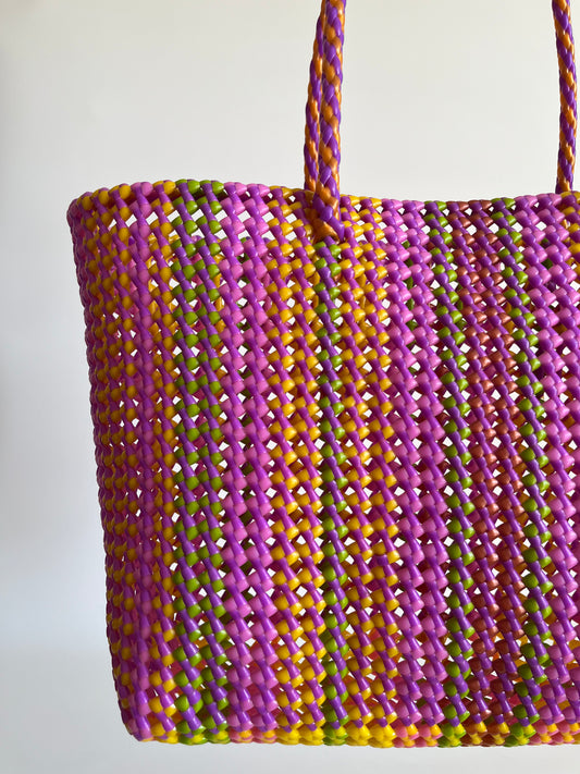 N°421L - SAC PANIER TRESSÉ MAIN - GRAND - multicolors