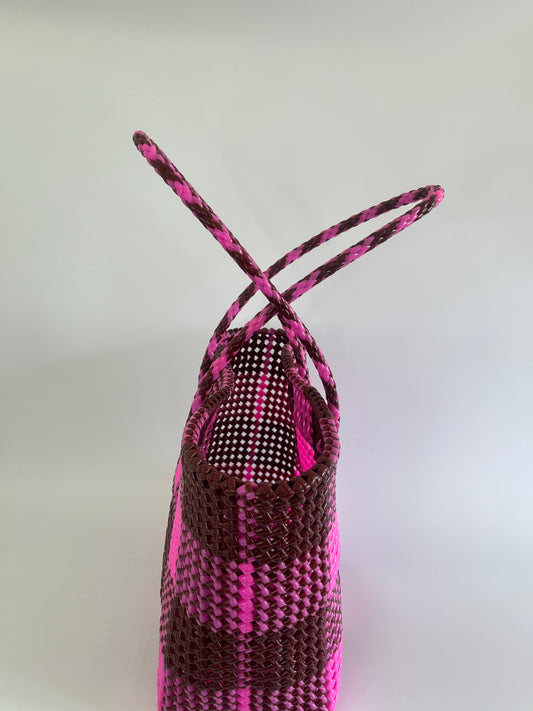 N°221L - SAC PANIER TRESSÉ MAIN - GRAND - bordeaux & rose clair