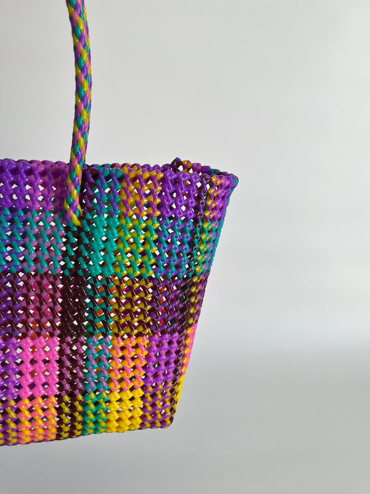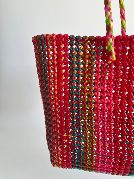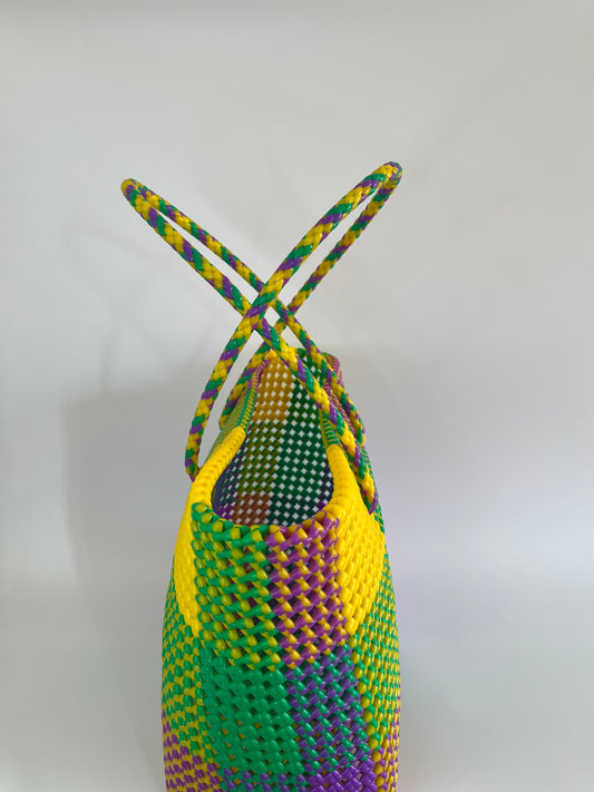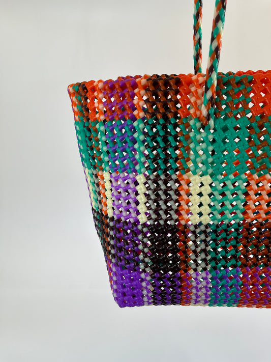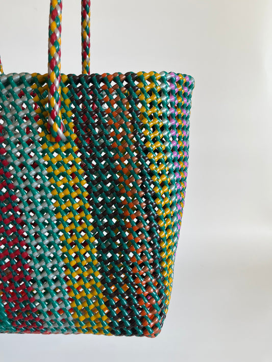 N°361L - SAC PANIER TRESSÉ MAIN - GRAND - multicolors