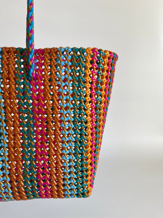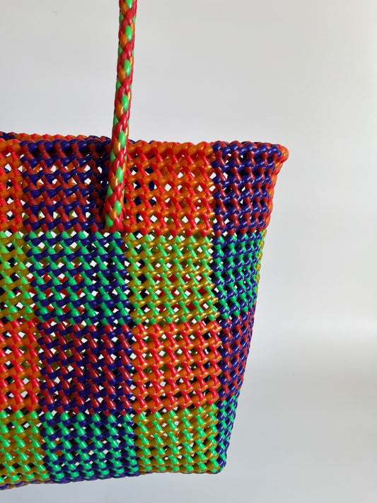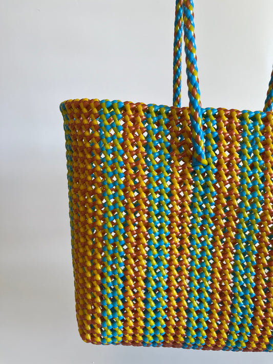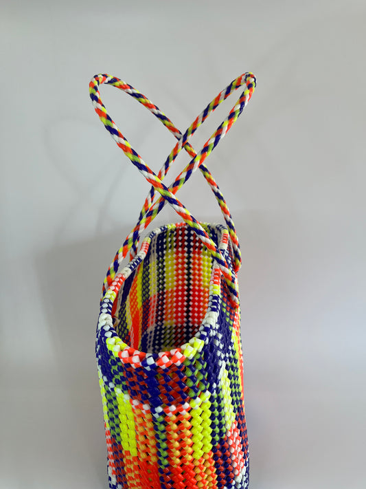 N°321L - SAC PANIER TRESSÉ MAIN - GRAND - multicolors