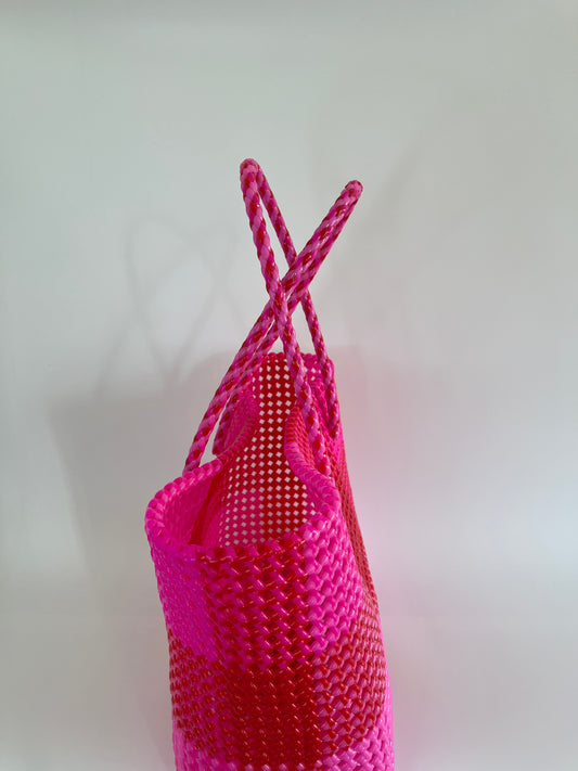 N°12L bis - SAC PANIER TRESSÉ MAIN - GRAND - rose clair & rouge
