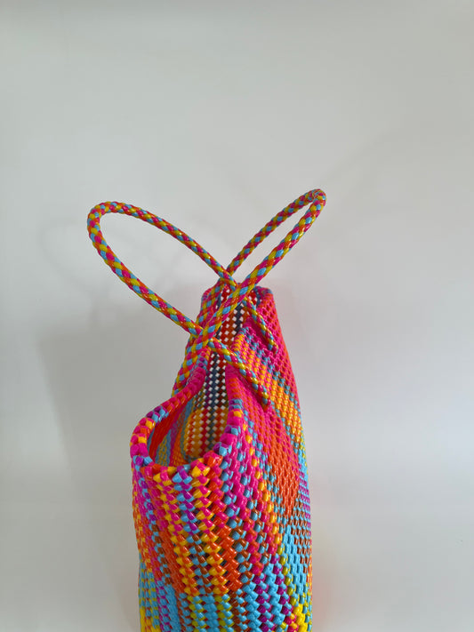 N°407L - SAC PANIER TRESSÉ MAIN - GRAND - multicolors