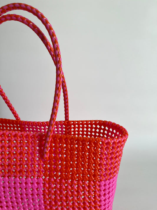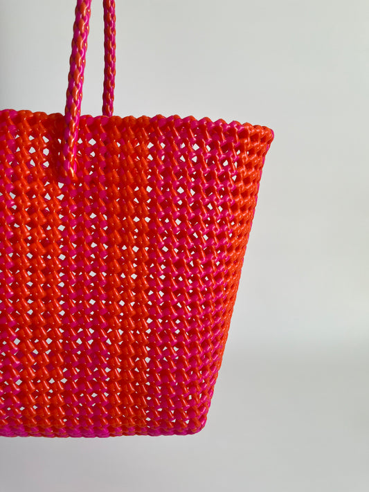 N°113L bis - SAC PANIER TRESSÉ MAIN - GRAND - rose fluo & orange